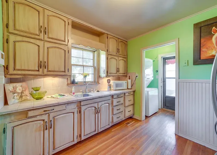 In a fully-fitted kitchen at Charming Tusla Home About Half-Mi To Expo Square!, there is a fridge, a stovetop, and a kitchenware. The nearby Merritt's Bakery Midtown is 0.2 miles away. Thanks to South Harvard Avenue & East 15th Street South bus stop, located in close proximity to the property, guests can easily explore Tulsa.